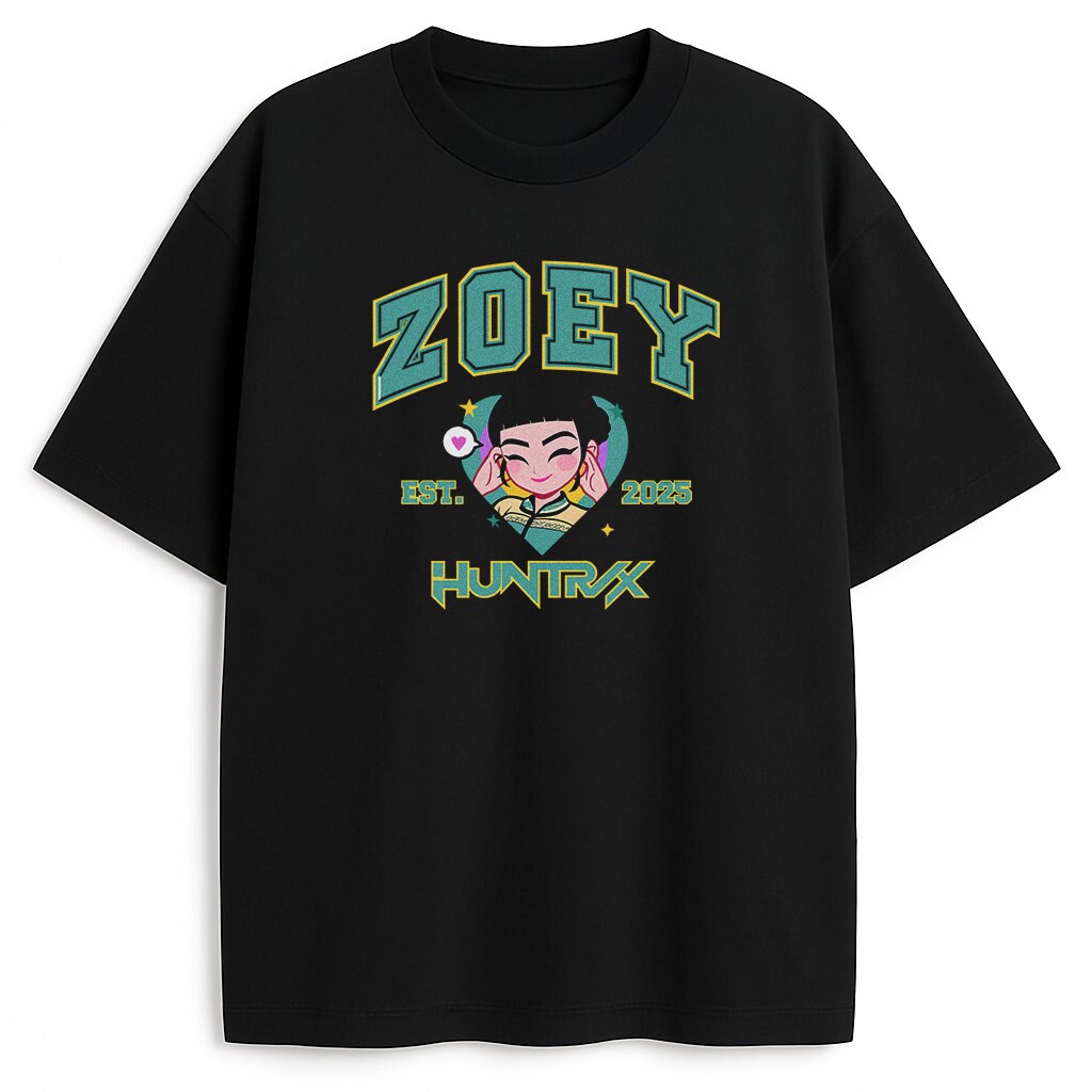 Koszulka Huntrix Zoey Merch łączy styl z emocjami. Wyobraź sobie show HUNTR/X – z tym merch będziesz w epicentrum. Ponadto, college aesthetic anime pasuje do casual looku. Mimo to, esencja to uczucie solidarności z Zoey, Rumi i Mira w ochronie fanów.