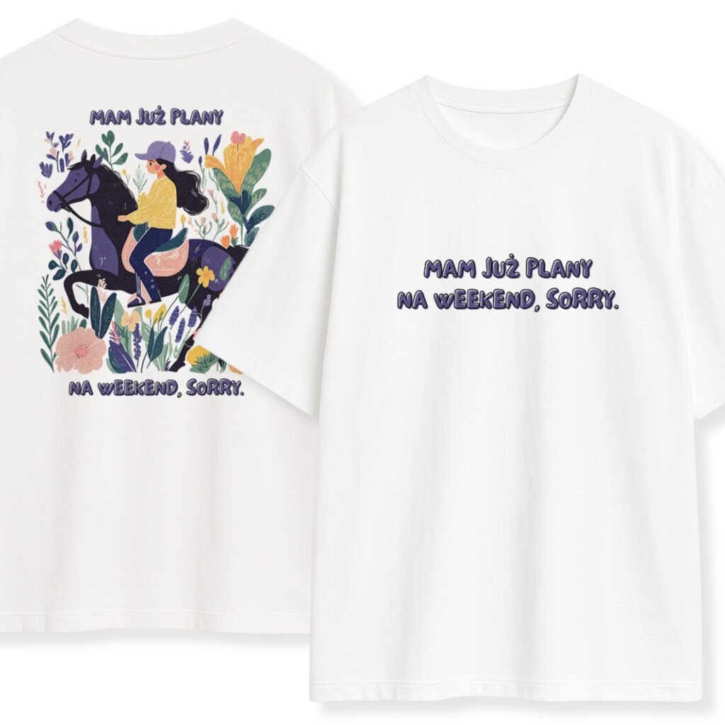 T-shirt Mam Już Plany Sorry Koń — dwustronny styl, który robi wrażenie