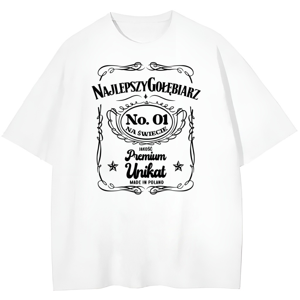 ✅ Stylowy nadruk – inspirowany kultową etykietą whisky Jack Daniel’s, idealny dla pasjonatów gołębi.