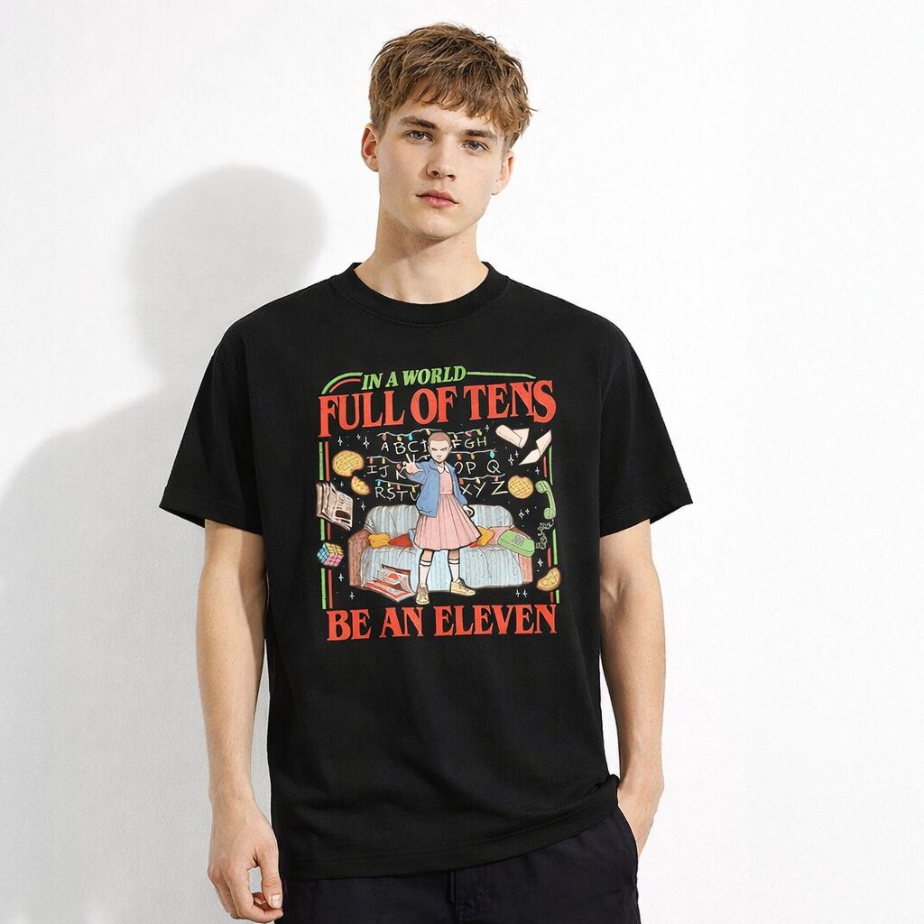 Są rzeczy, które wyglądają jak zwykły nadruk… dopóki nie spojrzysz drugi raz. Wtedy pojawia się znajome napięcie, jakby w tle, poza kadrem, ktoś właśnie przekręcił gałkę w starym telewizorze. Ta koszulka ma dokładnie taki efekt. Łączy retro estetykę lat 80. z atmosferą Hawkins, gdzie zwykły dzień potrafi nagle pęknąć jak cienki lód. Koszulka Stranger Things Eleven „Full of Tens” jest dla tych, którzy lubią ubrania z charakterem, a nie tylko z obrazkiem.