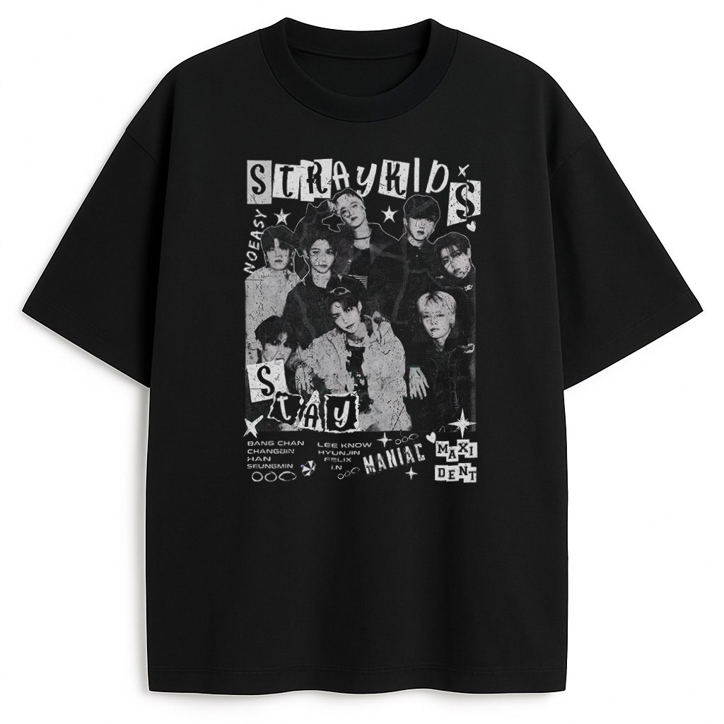 W świecie, w którym moda zmienia się co chwilę, T-shirt Stray Kids Oldschool pozostaje niezmienny jak refren, który nucisz pod nosem od lat. To nie tylko odzież — to dowód przynależności do fandomu, który nie potrzebuje błyskotek, by świecić. W tej koszulce każdy detal ma sens: czarno-biały nadruk z członkami zespołu, kolażowy układ graficzny i dynamiczne liternictwo, które wygląda jak wycinanka z punkowego zinu.
