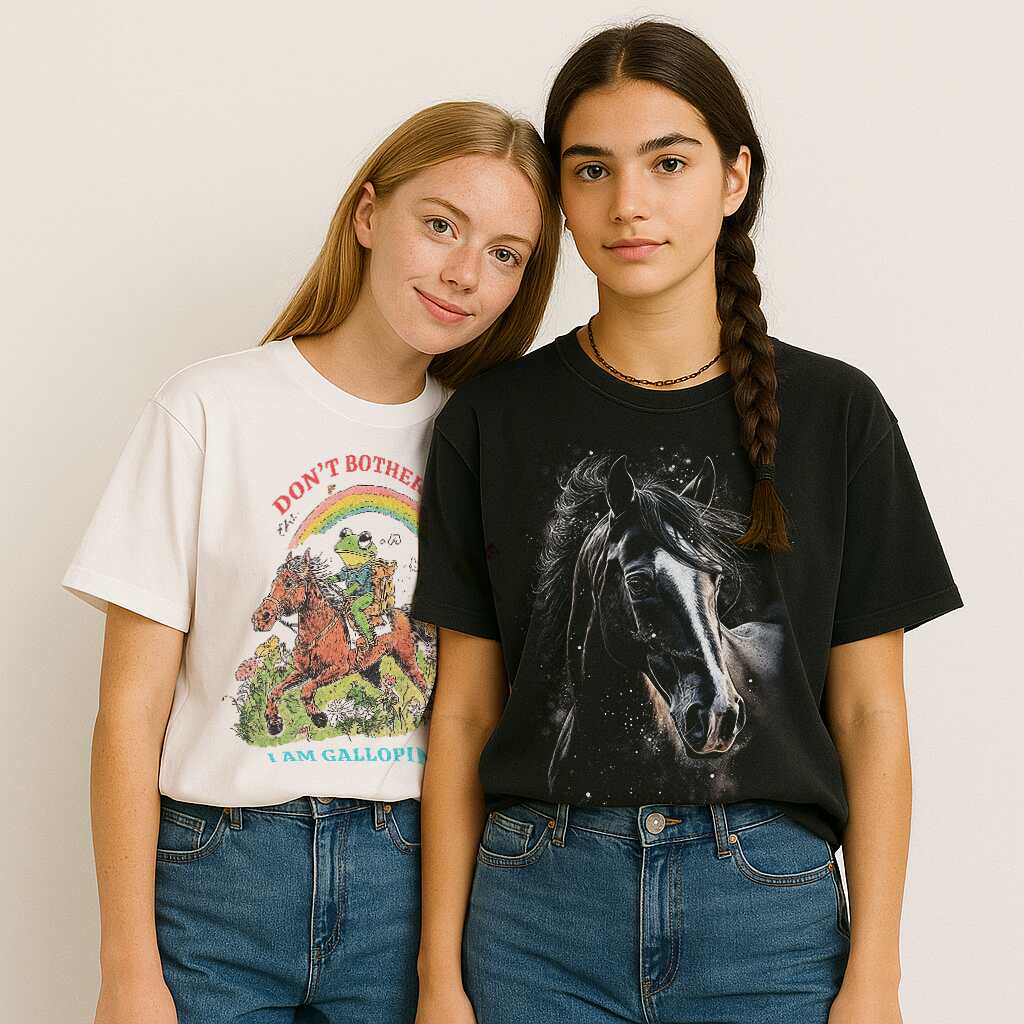Dzięki temu t-shirt dla koniary działa w codziennych stylizacjach i nie wygląda „przebraniowo”.